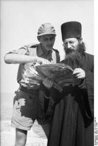 Адолф Хитлер је добио титулу "Високи заштитник Свете Горе" (нем. Hoher Protektor des heiligen Berges), гарантујући Светој Гори очување досадашње аутономије и несметани монашки живот на њој.   И заиста, Света Гора је остала нетакнута током читавом рата, прва страдања Свете Горе су почела тек од стране комуниста током грађанског рата, али о томе у следећој објави. Данас ће поједини критичари осудити овакав поступак светогораца, други ће то приписати византијској дипломатији, трећи грчкој прилагодљивости тренутној ситуацији... Треба имати у виду да су светогорци имали искуство са Бугарима у Првом светском рату, када су бугарски војници пљачкали светогорске манастире, а не ретко тукли па чак и убијали монахе. Чак и данас, након 100 година од завршетка Великог рата, откривају се по бугарским антикварницама или приватним колекцијама иконе, мошти, разни предмети покрадени са Свете Горе током рата. Светогорски монаси, али и сама Грчка не ретко откупљују те предмете у жаљи да их врате тамо где припадају. Дакле, поучени једним таквим искуством, са јасном свешћу да је њихова дужност да очувају хиљадугодишње манастире и њихово непроцењиво културноисторијско благо, светогорци су се одлучили на овакав дипломатски корак. Алфред Розенберг, немачки министар за окупиране источне територије, је оформио експедицију за изучавање Свете Горе, односно њених историјских и духовних одлика. На челу ове комисије се налазио угледни немачки византолог Франц Делгер. Делгер је био члан Баварске академије наука и професор на минхенском Универзитету од 1931. до 1958. а на Свету Гору је пристигао у августу 1941. године. Треба поменути и то да је Франц Делгер први увео термин "Росикон"(Русик) за руски манастир Светог Пантелејмона, који се до данас задржао пре свега међу Грцима. У својој књизи, коју штампа 1942, Делгер бележи: "У манастиру Констамонит, на почасном месту у пријемној соби, набасали смо на слику нашег фирера. Монах је нашао слику у илустрованом часопису и на основу ње је начинио цртеж. И другде смо могли да видимо како се снажно личност фирера и Великонемачког рајха утиснула у машту становника Атоса, барем оних који нису у потпуности окренули леђа свету. Када смо долазили, од стране неколико манастира, и када смо одлазили, од стране једног (Дионисијат), отиснувши се на море у нашем малом броду, бивали смо поздрављани заставом са свастиком. Фирера многи монаси сматрају за ‘Високог заштитника Свете Горе’ који ће такође своју заштитничку руку држати изнад Свете Горе и када буде реорганизовао свет. Имали смо предивно искуство док смо фотографисали чудотворну икону Пресвете Богородице. Из угла гледања Атоса, био је огроман уступак то што су нам дали дозволу да фотографишемо свету икону, а неки монаси су нам чак припомогли у припреми. Један старији монах који је посматрао те припреме је вртео главом. Окренувши се ка нама, рекао је: ‘Ако желите да фотографишете Панагију, требаће вам срећа; јер Панагија још увек није дозволила да буде фотографисана ‘. Онда је додао: ‘Али може бити да ће Панагија учинити изузетак за вас Немце и дозволити да се фотографише, јер ви Немци водите свети рат против бољшевизма, непријатеља Бога’."   Било како било, током Другог светског рата на територији Свете Горе било је свега десетак стално стационираних немачких војника са личним наоружањем (пиштољима). Тек 