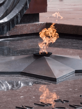 Овај пламен, посвећен антихристовој Октобарској револуцији, убрзо је ритуално пренесен у Москву 1967. на меморијал посвећен Незнаном јунаку, тачније свим црвеноармејцима палим у рату 1941/45. Смештен под кремаљским зидом, заједно са маузолејем Лењина и бољшевичким некропољем, чини јединствену целину централног совјетског пандемонијума.