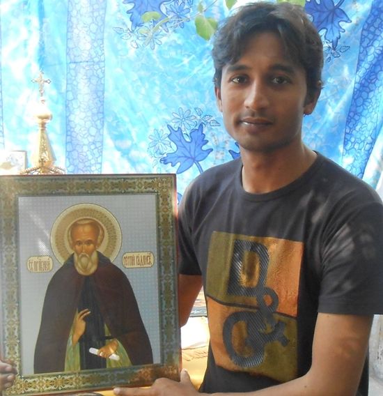 » Санавар Марко с иконом преподобног Сергија Радоњешког +++ Санавар Марко је инжењер-програмер, има диплому магистра у области информационих технологија. Бави се израдом и администрирањем веб-сајтова, решавањем IT-проблема и задатака. Врло је активан члан православне мисије у Пакистану. Васпитан је у Уједињеној презвитеријанској цркви Пакистана; о хришћанству су му причали његови родитељи, пастор и наставници у школи. Санавар је рођен 1986. године, завршио је Католичку средњу школу у Саргодхи. Православну литературу је почео да чита 2008. године; по савету свештеника Кирила Амера почео је да долази у Центар за проучавање Православља. Центар за проучавање Православља у част Животворног Крста основали су свештеници Кирил Амер и Јосиф Фарук 2006. године. Санавар је једном недељно долазио на предавања која организује центар, читао је књиге о православној вери и њеној историји, био је активан учесник у дискусијама на семинарима. Ево приче коју је Санавар Марко испричао оцу Јосифу о томе како је стекао веру. Свештеник Јосиф Фарук и Санавар Марко Ране године – Цело моје детињство и године ране младости протекли су у хришћанској средини. Читао сам Свету Библију, а моји родитељи и наставници су ме васпитавали у духу хришћанских вредности. Добро знам да треба да живим у складу са хришћанским заповестима и како да заштитим своју православну веру у Пакистану. Био сам обично, нормално дете, понекад ћудљиво и тврдоглаво, али сам увек слушао своје родитеље. Растао сам у исламском друштву, окружен муслиманима. И управо захваљујући вери мојих родитеља у њихову нераскидиву везу са Христом могао сам да останем убеђени хришћанин. Много пута су моји другови муслимани у колеџу и на универзитету покушавали да ме поведу кривим путем, јер им је строго наложено да обраћају у ислам не-муслимане, али ми је крст нашег Господа Исуса Христа увек давао снагу да се одупрем. Изучавање православне вере Пошто сам стекао звање магистра у области информационих технологија и добио сам добар посао у приватној фирми, нисам имао материјалних проблема. Имам породицу у којој влада љубав. Све време сам с Богом: читам Свету Библију, идем у цркву на богослужења, молим се.  Санавар Марко За време студија на универзитету упознао сам се са житијем преподобног Сергија Радоњешког и од тада све као да се преокренуло. Једноставан живот овог аскете-подвижника буквално је преокренуо моје представе о томе како треба живети и веровати. Он је много година провео у шуми као отшелник потпуно сам, а кад је митрополит Алексије замолио да буде његов наследник Сергије је одбио, јер је више волео да остане обичан монах. Све ме је то веома заинтересовало и почео сам да читам о Православљу – све више и више. Као инжењер-програмер детаљно сам проучавао оно што сам на интернету могао да нађем о Православљу пре него што сам одлучио да постанем православац. Свети живот преподобног Сергија ме је у многоме надахнуо да пређем у Свето Православље. Данашња ситуација у Пакистану и хришћанска вера Као што је већ речено, васпитан сам у Уједињеној презвитеријанској цркви и похађао сам католичку школу и поштено признајем: управо ми је вера у којој сам одрастао помогла да живећи у исламској држави Пакистан останем чврст у хришћанству. Зато што је муслиманска мисао створила мноштво различитих лажних прича о нашој вери 